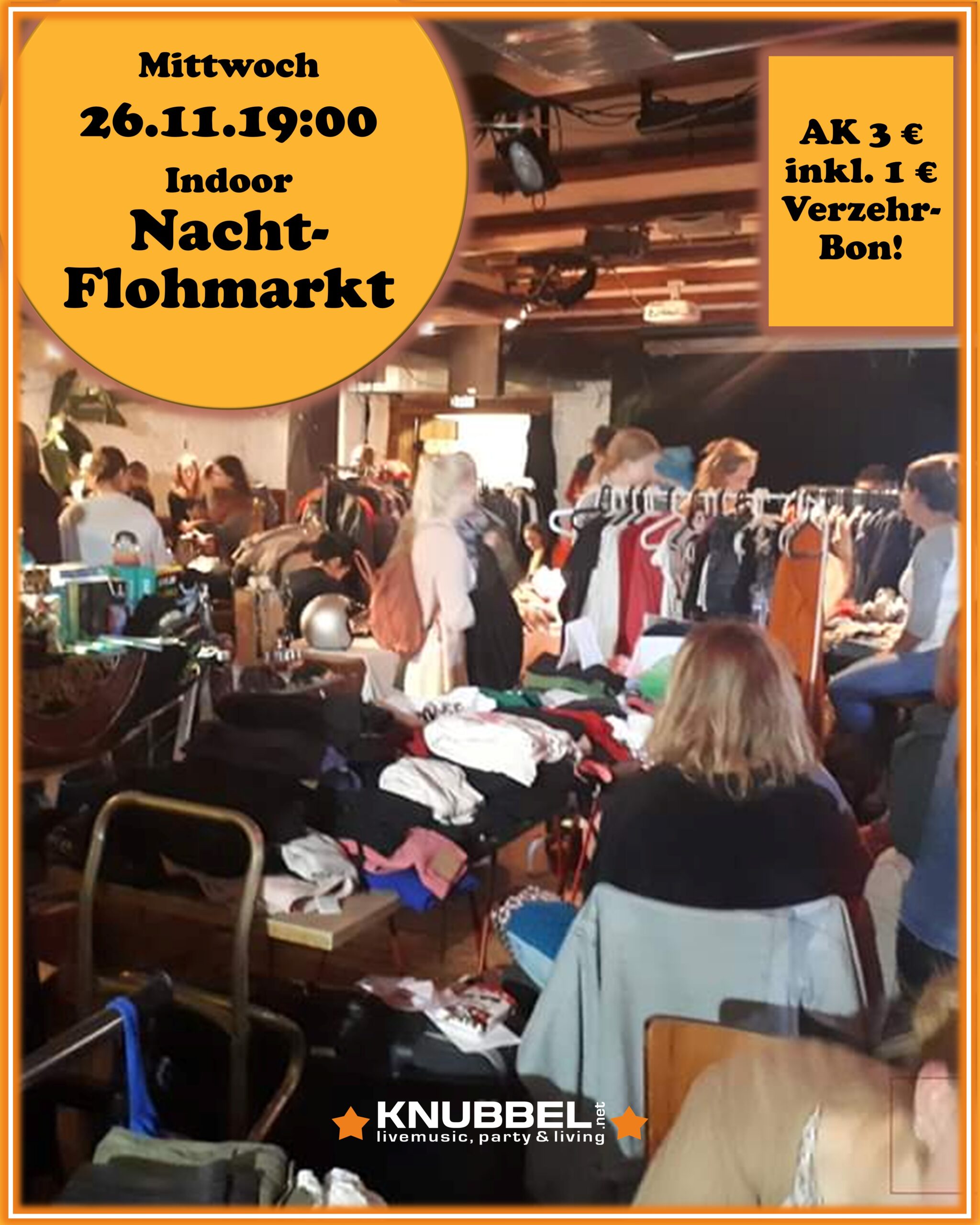 Willkommen zum Knubbel Indoor-Nachtflohmarkt! Entspannt und lässig suchen, stöbern, finden, am Abend bis 22.30 Uhr. Mit chilliger Musik, äußerst leckeren Waffeln (Erlös für einen guten Zweck) und Getränkespecials!