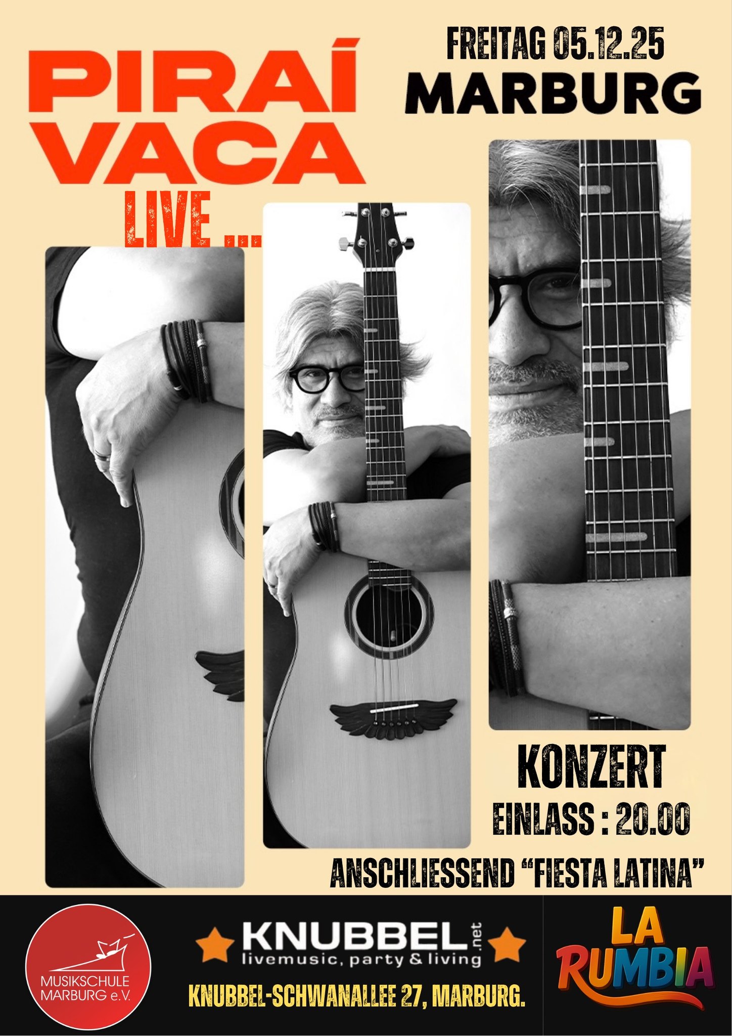 Erst erlebt Ihr ein Live-Konzert der Sonderklasse von „Piraí Vaca“, einem der bekanntesten Gitarristen Boliviens auf Europa-Tour. Er zaubert Euch ein unglaubliches Repertoire mit Stücken von Queen, Metallica, Led Zeppelin, ACDC und noch mehr in Versionen für eine einzelne Gitarre auf die Bühne. Nach diesem musikalischen Leckerbissen geht der Abend in eine heiße lateinamerikanische Party-Nacht über – mit DJ „Sergio“ aus Bolivien an den Decks. Freut Euch auf Salsa, Bachata, Merengue, Cumbia, Latin Beats! Und auf Top-Stimmung bis in den frühen Morgen hinein!